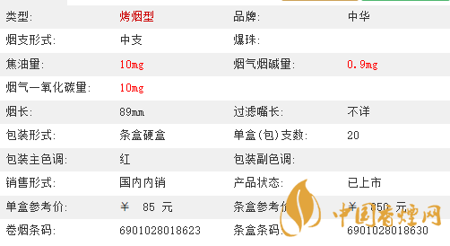 中华(金中支)香烟价格参数中华(金中支)于中华品牌创牌66周年之际推出,作为中华品牌的一款划时代产品,2016年12月底正式上市。中华(金中华)作为“中华”旗下最高端的个性化产品,官方指导价85元/包,但市面上此烟可不好买,甚至被炒到了300元/包,市场建议零售价为850元/条,如果渠道不够硬,根本无缘入手。