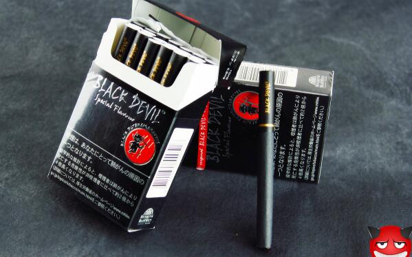 魔鬼香烟属于上等雪茄型香烟,纯黑色烟身和滤嘴,香味浓郁,烟劲阴柔,吸食时满屋芬芳,有燃点香薰油的感觉,一次不管是抽起来还是闻起来都十分诱人。