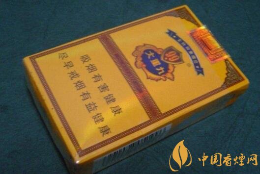 明黄色的烟盒一看设计风格就是浓浓的云系,虽然是软盒,不过经过了硬化,显得很挺括。正面的菊花应该是意味着九月菊花盛开的金秋时节,盾牌则象征着永不自满、步步登高的祝愿与志向。