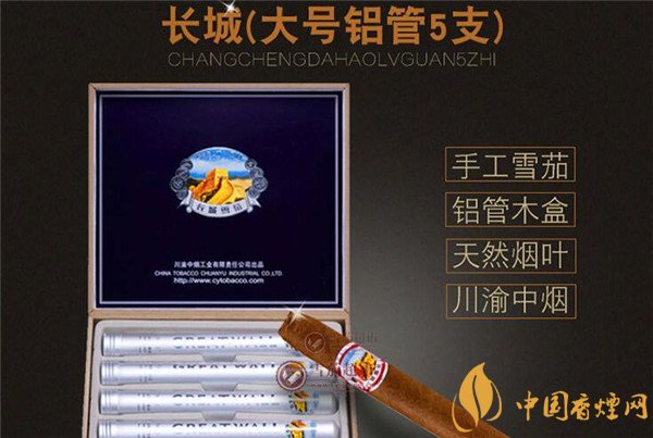 长城大号铝管5支包装设计简约雅致,银色的铝管装备设计时尚,整体看上支非常有档次。棕黄色的烟身圆润而挺拔,采用全世界最优质的原料精心研制而成。黄润的巴西茄衣,进口印度尼西亚茄套,优质的茄芯烟叶长芯,都体现这款长城雪茄烟乃最好的品质为保障。长城大号铝管5只好抽吗?下面请随烟吧的小编看看这款长城雪茄烟怎么样。