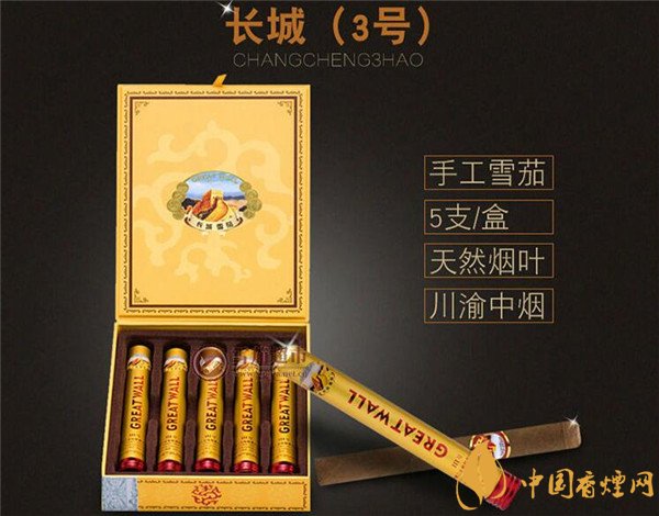 这款长城雪茄烟外观采用金黄色的外包装显得贵气十足,LOGO设计也将天空蓝与帝王黄色系融合都特别巧妙,装雪茄的铝管色系是彰显宝贵的色系为金黄色与红色,这两种色系的搭配非常养眼。外观论及这款长城雪茄烟怎么样,这款长城雪茄烟包装上进行了升级改革,整体看上去特别炫酷高大尚能充分吸引消费者的观赏欲望和购买欲望。
