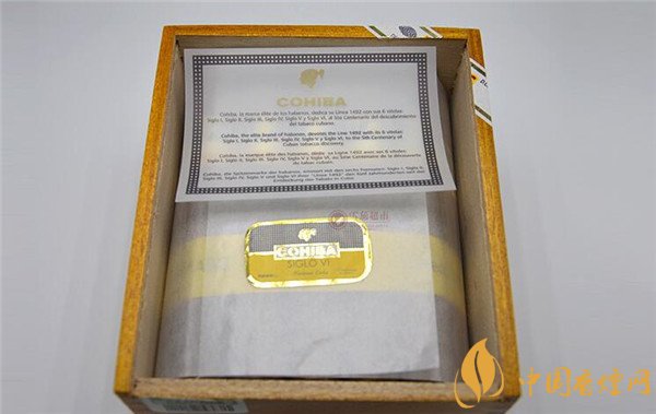 这款古巴雪茄烟人内盒设计风格也很简约,这也是高希霸一贯的风格。打开木质内盒,内盒色系保持着木质盒原有的本色,内盒里面有一块木质的薄木板,上面印着黑色的LOGO标,内盒盖上也印有它独有的黑色LOGO标志。内盒里面放置着一张产品介绍的纸,给人一种很亲切的感觉。论及这款古巴雪茄高希霸世纪6号怎么样,总的来说内盒的设计线条十分流畅,用手摸着也挺舒服。