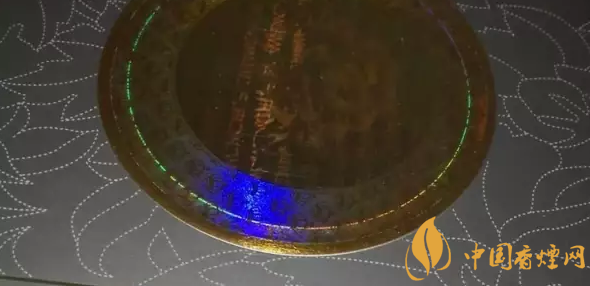 反面也是警示语和镭射防伪图案,这个镭射标从不同的角度能够变换不同的内容,有的角度看到的是芙蓉花,有的看到的是芙蓉王三个汉字和几排拼音字母,镭射标的外圈成很规整的涡轮状,能变换图形和色彩,这在很大程度上能起到防伪的作用,帮助广大烟民辨认真假芙蓉王硬黄(内外包装)。