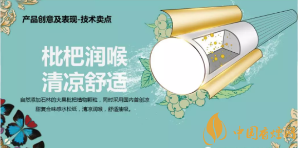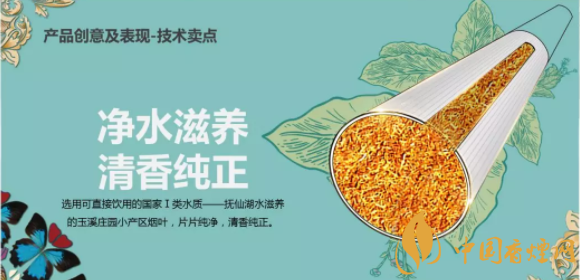 产品特点:选用可直接饮用的国家1类水质—抚仙湖水滋养的玉溪庄园小产区烟叶,片片纯净,清香纯正。自然添加阿诗玛故乡石林的大果枇杷植物颗粒,同时采用国内首创凉甜复合味感水松纸,清凉润喉,舒适抽吸。自然萃取天然,清甜回甘,愉悦享受,丰富抽吸满足感。