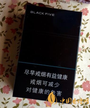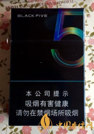 中南海典5外包装整体采用的是黑色作为底色,和黑八很像,正面左上角写着英文:BLACK FIVE,右上角是一个大的5,这个数字的中心是用淡淡的绿色,外圈烫银,不同的角度会显示不同的颜色,在正下方警示标语的上面有一条绿色的线,在这条线的左上方其实是有凸出的中南海和中南海拼音,背面和正面差不多,包装焕然一新十分有立体感。