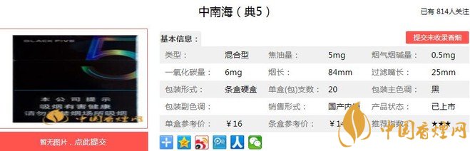 三、中南海典5香烟参数