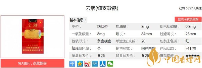 三、云烟细支珍品香烟参数