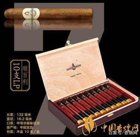这是中英合资品牌。作为荷兰著名老牌雪茄品牌的顺百利,优选拉丁美洲和印尼的烟叶,沿袭荷兰雪茄传统工艺,低温自然陈化两年以上,从烟叶到成品经过4次冷藏221道工序精制而成。原木外盒,单支包裹雪松木片和铝管。主要包装材料铝管、丝纸、雪松分别从意大利、荷兰、美国进口。