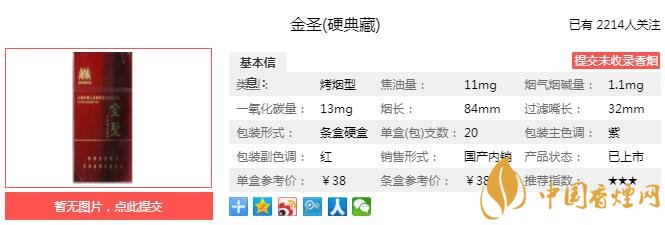秉承自然灵秀之气,形神俱清:选用国内云贵高原小产区清香型优质烟叶和世界著名烟叶产区名贵烟叶,复烤后选用最醇和之中部,经天然山东储藏三年以上。本草萃香,优雅飘逸: 配以第二代“金圣香”本草萃取精华和美国IFF香精香料精调而成。烟气整体平衡协调,想起优雅飘逸、自然醇和、透发感极强。经烟吧小编市场调查金圣典藏售价为38元/包。