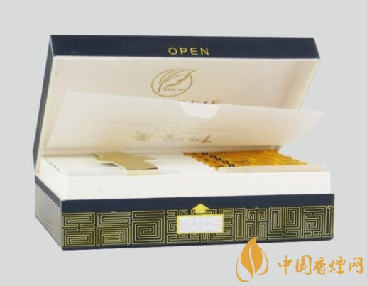 烟盒尺寸较大,为向上开启的全开盒,这种烟盒既比普通翻盖盒稍显高端,又不比那些异形盒那么浮夸,用在中高档产品上比较稳妥。包装工艺确是颇为精致,从拉头封条以及印刷质感等各方面来说都很优秀。底色为墨蓝色,图字颜色为金色,这一明一暗的两种配色搭配在一起给人以尊贵而典雅之感。而烟盒两端的回形文字“居高自远茗仕之风”,又提升了这款烟的文化品位和意境。外观的设计还是值得夸赞。