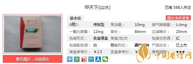 一、甲天下山水香烟价格