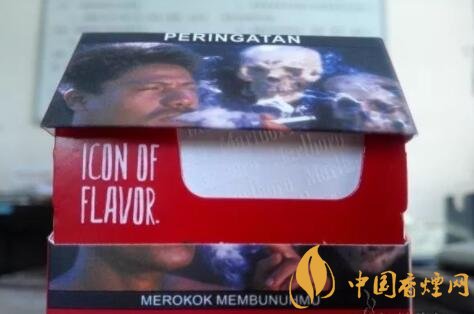 烟盒内衬骨架上印制的“ICON OF FLAVOR”,直译为‘风味标志",应该指的是印尼硬红万那浓郁的混合气味。锡纸上的Marlboro字体效果,有如浮雕般凸起。