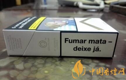 正面的包装设计,也是目前欧盟版本的标准式样。翻盖上的文字为葡语,内容自然是关于吸烟有害健康了。