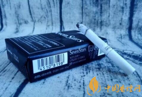 烟盒的正反及左右两侧均以白色的小五角星为图案,横平竖直地排列开来。与其它Seven Stars版本一样,位于烟盒正反两面中间都有阿拉伯数字“7”的标识。REAL SMOKE,直译成中文是“真烟,真正的香烟”之意。A BOLD FULL FLAVOR,中文意思是“烟味十足”。综合意思,是说此款日税黑七星的品质之高。