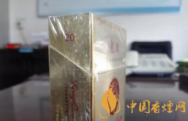 又是款浅金色调为主、修饰以深色金边框的包装设计,有些像芙蓉王硬黄的造型。圆圈中的金龙造型,更像是抽象画法的,没有真龙或者其它带有龙的图案香烟的丰满与霸气。