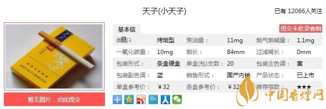 招牌头香,大师杰作,精选凉攀地区绿色无污染优质顶级烟叶,由专属天子香烟的专家级大师亲自配方,精心设计的招牌头香予人优雅自然的丰醇质感,在口口生香中尽显引人入胜的高品质内涵。经烟吧小编市场调查天子小天子售价为32元/包。