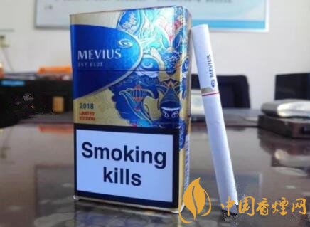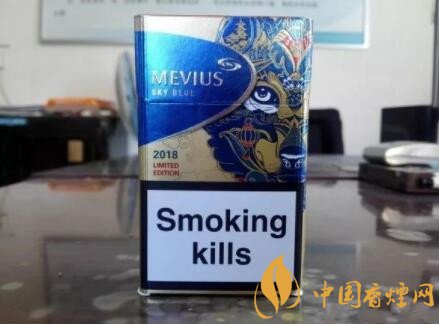 我们首先来看一看烟盒的整体包装设计情况。柔七的LOGO自不必多言,它的下方印有“SKY BLUE”字样,意指“天蓝”或者“蓝天”款式。欧盟样式的黑色粗警示框的上方,同时印有“2018 LIMITED EDITON”字样,意为“2018限量款”。