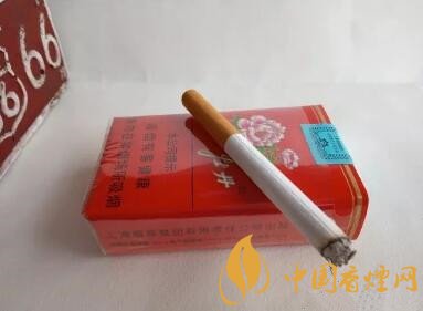 烟嘴颜色是黄色,上面隐约可以看到一些白色的小点,烟支上面印有牡丹的图案和logo。