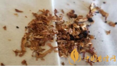 烟丝油润亮泽,以明黄烟丝居多,切宽1mm,揉捻得比较细软。用料上乘考究。