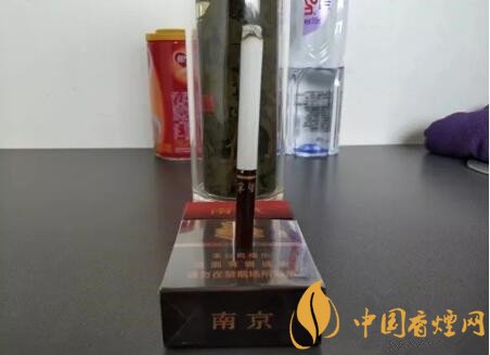移动目光至烟盒顶部,顶部是“南京”二字的英文标识,下部有“过滤嘴香烟”五个字。
