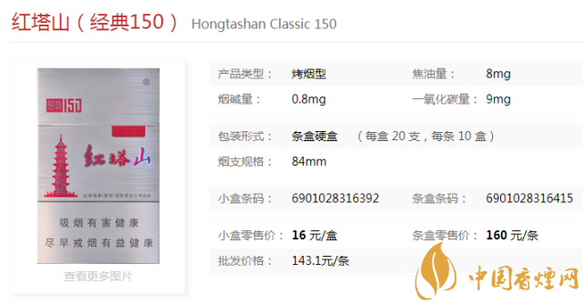 红塔山(经典150)以烤烟名种“红花大金元”为核心原料。应用红塔集团独有的立体网状配方等多项领先技术提升吸食口感,凝练饱满香气,呈现醇香味道。增香提醇技术突出烟香的自然清甜,提升烟气的醇和度。
