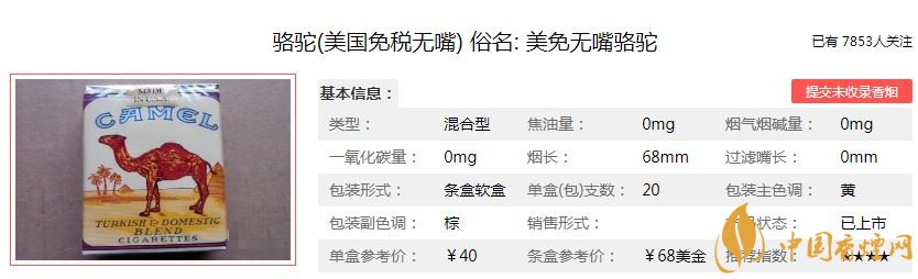 以上是烟吧小编为大家整理介绍的无嘴骆驼(美国免税)香烟的价格参数,以及烟民评价,希望为大家提供帮助。如果你抽过这款无嘴骆驼,可以在下方评论区留言。