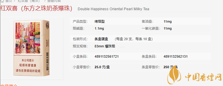 东方之珠奶茶爆珠参数红双喜了解一款香烟不仅仅要了解口感,还要了解参数!
