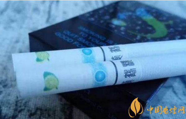 这款双爆过滤嘴上,没有印制数字8(单爆有),滤嘴上端的绿色是青柠图案,下边是蓝色是薄荷标识。