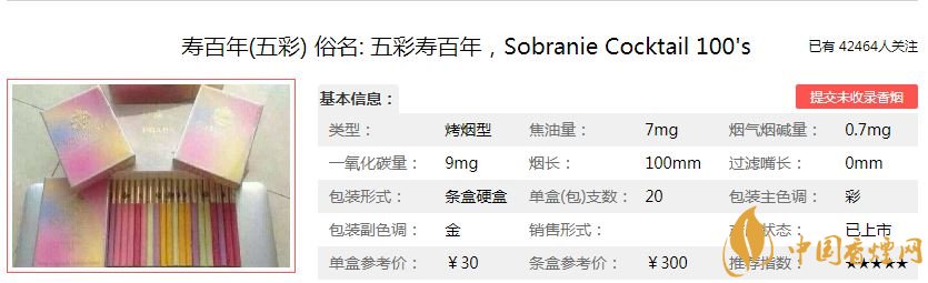 寿百年(五彩香烟价格参数:单盒参考价:¥30