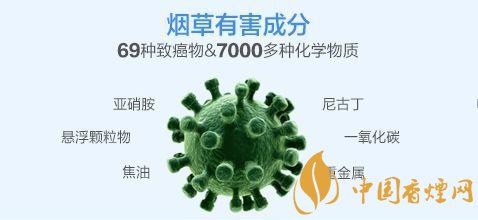 烟草烟雾由数千种化学物质组成,其中包括至少70种已知会导致癌症的化学物质。烟草烟雾中的化学物质包括: