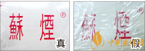 真烟烫金字体线条清晰、不漏金,金色部分成色纯正;假烟烫金字体线条不清晰,有漏金现象,金色部分成色暗淡。