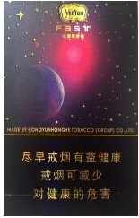 外包装采用宇宙繁星为基底,烟盒底部有着云烟的拼音字母,下面还有一个FAST的英文和云烟的网站,个人不太喜欢这个网站的布局。其他的都还算细节处理到位,可谓面面俱到,整体感觉精致美观。烟盒比常见的中支烟盒要小上一圈,具体多少就没量了。