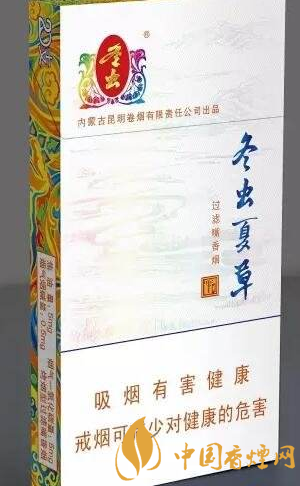 这款是由蒙古昆明卷烟有限责任公司出品的高档细支卷烟,选用云南优质烟叶以及云贵上等烟叶,经过经加工让烟丝色泽油润光鲜。外包装刻画蒙古族和藏族色彩,正反面以白色为基调配亮蓝的行草字体“冬虫夏草”和手写体的拼音。烟气柔和细腻,留香持久,口感清新淡雅,市面售价为60元/包。