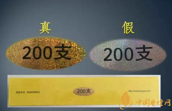条盒侧面的“200支”,真假卷烟采用不同材质的素面镭射电化铝。