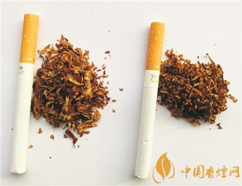 烟丝差异对比真烟烟丝疏松,光泽油润性好,呈柠檬黄色,含碎末少;假烟制丝工艺粗糙,色泽发暗无光泽,烟丝中含碎末较多。