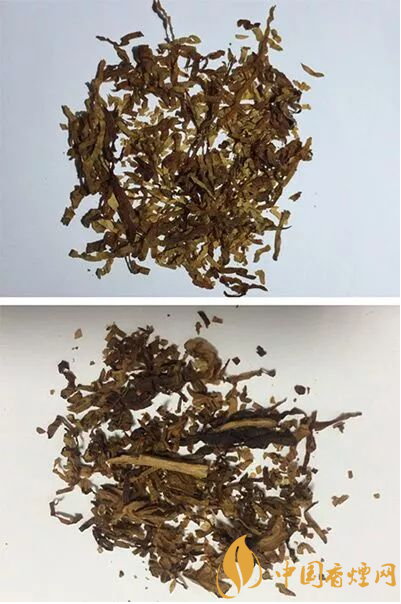 真品卷烟烟丝呈金黄色、丝条状,烟丝结构为纯叶丝,香气醇厚;