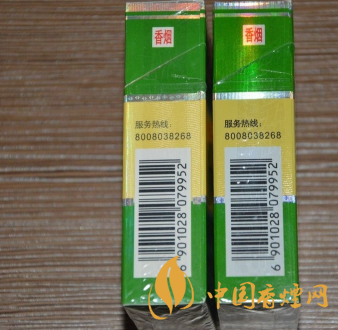 条形码背景白色明显发暗灰,同样上方香烟二字字体粗大颜色较深。