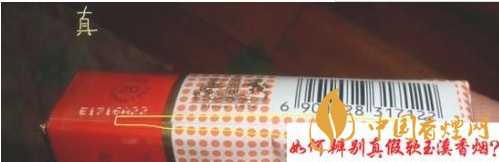 1这个图片看喷码和字体,真的喷码是双层喷码,有糊的感觉,而且喷码有冲刺感,假烟有的也是双层喷码但是没有糊的感觉和冲刺感。