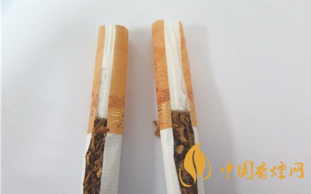 烟丝结构差异对比:真品烟丝切丝宽度均匀一致,烟丝油润性好,有弹性,颜色呈金黄色;假烟烟丝切丝工艺粗糙,宽窄不一,含大量劣质烟梗片,烟末含量多,颜色呈褐色,与真品烟丝结构存在明显差异。