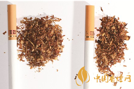 烟丝差异对比:真烟烟丝切丝宽度与长度适中均匀,顔色呈橘黄色,光泽油润性好,柔软疏松,烟丝中含碎末少,烟丝结构为叶丝、膨胀梗丝和造纸法再造烟叶;假烟制丝工艺粗糙,一般使用未经处理的劣质烟丝,色泽发暗无光泽,呈暗褐色,烟丝中含碎末较多,烟丝结构一般为叶丝和没有经过膨胀处理的梗丝,无造纸法再造烟叶,烟丝结构与真品特征存在明显差异。