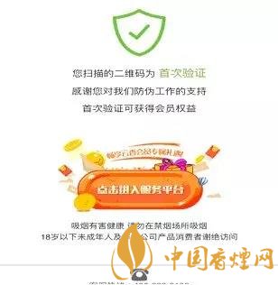当时尚的细支云烟(神秘花园)与先进的动态二维码技术结合,一物一码,让消费者轻松识别卷烟真伪,帮助大家实现云烟神秘花园防伪。这种云烟神秘花园验证码防伪只要打开手机微信中的扫码功能,对商标侧面二维码扫码:扫码后,按提示,输入小盒开盖处的6位验证码,如下图: