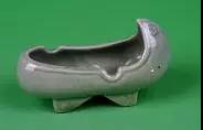 这款工艺烟灰缸是来自韩国的瓷质烟灰缸,颜色为细腻的青绿色,造型呈韩国古时的翘头船有齿屐鞋形,鞋口沿轻微向内,靠近鞋跟及鞋头处各有一个凹槽,用来搁置香烟。