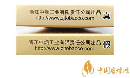 真烟钢印为机器动态打印,整体钢印较深、间距不等,其位置与企业网址重叠;假烟钢印一般为手工静态打印,钢印较浅,位置与文字重叠。