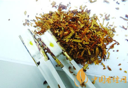 真品滤棒中添加了“香润珠”,油润性好切丝均匀,颜色呈现金黄色;假烟滤棒未添加“香润珠”,烟丝干直切丝粗细不一,颜色呈现出浅褐色,与真品存在显著差异。