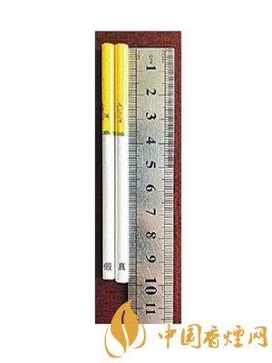 五、看烟支长度差异两相比较,真烟的烟支明显比假烟的烟支长。