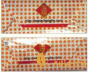 一、小盒外包装所用的烟用包装膜(透明纸)材质差异对比真烟所用的透明纸摩擦系数较低,透明度高,用手触摸可感到其表面较光滑,纸质较薄;假烟所用的透明纸材质粗劣,摩擦系数较高,用手触摸可感到较滞手,纸质较厚。