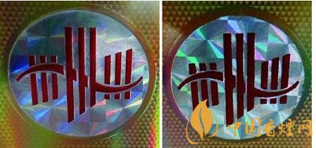 真品小盒正面商标LOGO采用凹凸一次成型技术,商标图案套色定位准确无误,成像效果层次分明,无脱漆掉色;假烟多采用高倍扫描仪仿印,印刷工艺粗糙,套色不准,边缘有明显脱漆掉色,与真品印刷工艺存在明显差异。