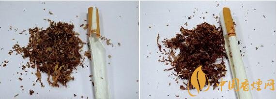 四、烟丝结构差异对比真品烟丝均是从醇化好的“红花大金元”烟叶中手工甄选出千分之一,成为“云烟(软大重九)”的主原料,从源头到工艺的“四级调香”体系,形成了独具特色的津甜香,切丝宽度均匀一致且无其他杂质;假烟从原料到烟丝结构均无法达到真品烟丝成色及掺配比例,假烟烟丝杂质较多,与真品烟丝结构存在明显差异。(左真右假)