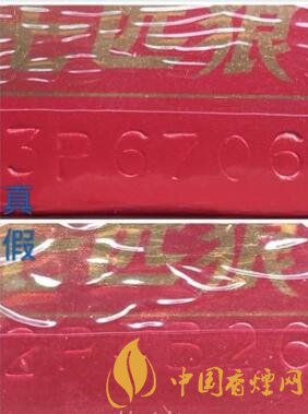 真品卷烟钢印深浅不一、排列高低不一、力度感明显、轮廓清晰;假烟钢印深浅一致且排列较为平齐。