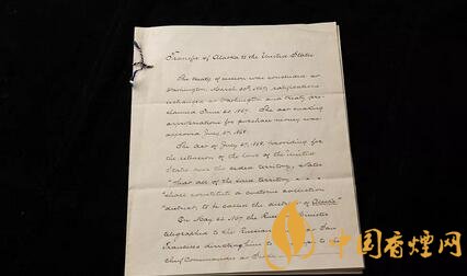 当时购买阿拉斯加后,留存了一大批资料,除了手写的信件和官方文件外,还有报纸账号,北极海岸地图,还包括这个装饰有标志性阿拉斯加场景的14K黄金雪茄盒。